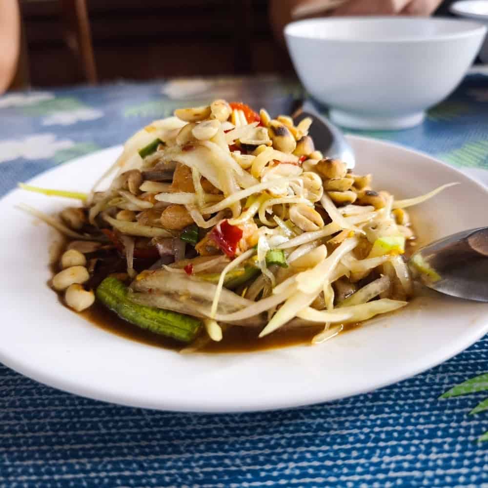 ครจะคิดว่าร้านก๋วยเตี๋ยวจะมีส้มตำที่อร่อยเฉย! ส้มตำของที่นี่รสชาติจัดจ้านถึงใจ สั่งมากินแกล้มกับก๋วยเตี๋ยวหรือกินคู่กับหนังปองควายคือเข้ากันแบบงงๆ แต่ลงตัวชิบเป๋ง! ความเปรี้ยวเผ็ดของส้มตำมาช่วยตัดเลี่ยนของน้ำซุปได้ดีมาก ทำให้เจริญอาหารคูณสิบไปเลย