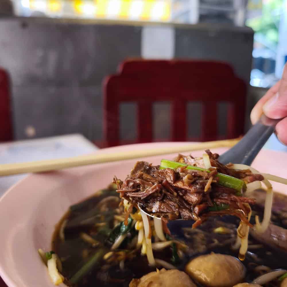 พอตักคำแรกซดเข้าไป…โอ้โห! มันใช่เลย! รสชาติเข้มข้น กลมกล่อม ไม่เค็มโดด แต่ได้ความหอมลึกๆ ของเครื่องยาจีนที่เคี่ยวมาอย่างยาวนาน ในชามมีทั้งเนื้อสดนุ่มๆ ลูกชิ้นเนื้อเด้งสู้ฟัน แต่…ความพีคสุดของชามนี้มันอยู่ที่ “เนื้อเปื่อย” ครับ!