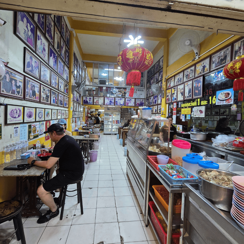 บรรยากาศเรียบง่าย แต่เต็มไปด้วยเรื่องเล่า เหมือนกำลังกินข้าวในร้านที่ทุกคนเคยมาเยือน มีโคมจีนสีแดงแขวนอยู่กลางร้านเพิ่มความขลัง พร้อมเสียงน้ำซุปเดือดปุดๆ ที่ฟังแล้วเหมือนเพลงกวนแกล้งคนหิว