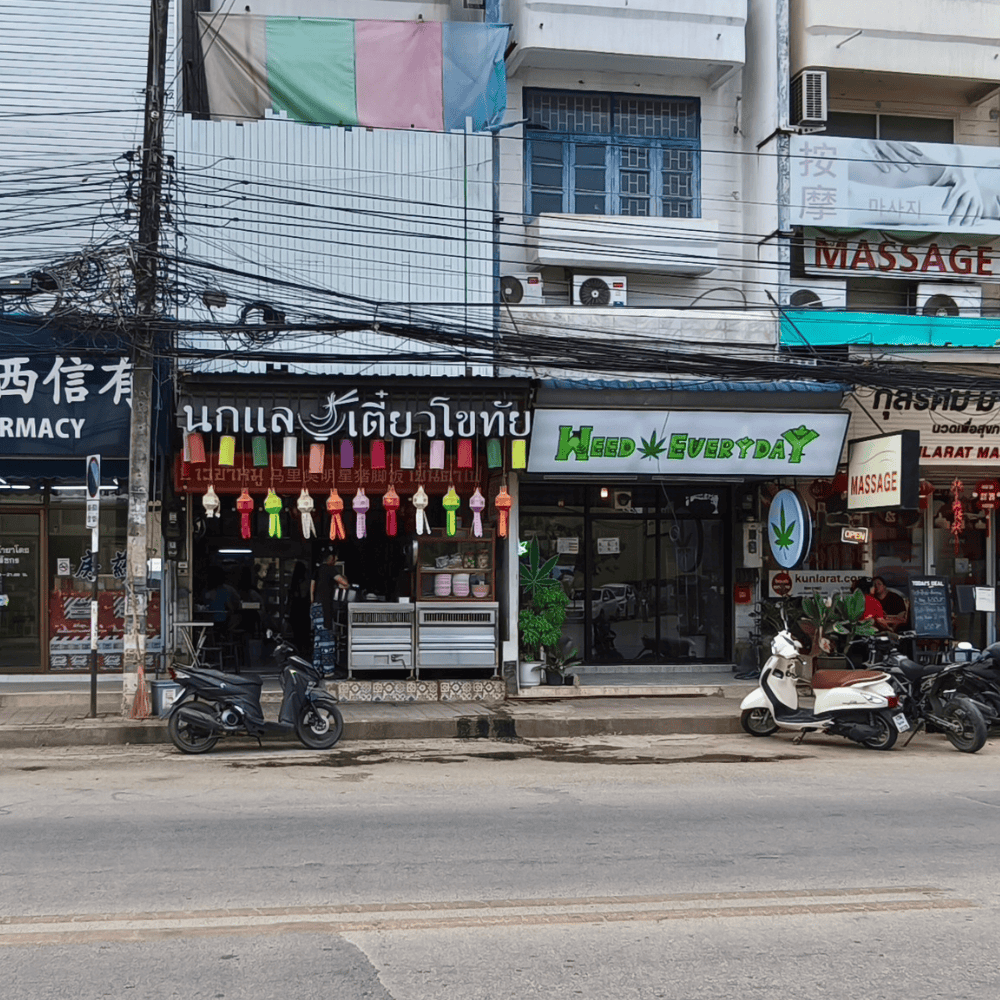 ร้านเป็นตึกแถวห้องเดียวริมถนนช้างคลาน เยื้องโรงแรมแชงการีล่า มาไม่ไกลมาก จะจอดรถได้สองฝั่งถนน แต่ต้องดูป้ายห้ามเวลานิดนึง หน้าร้านประดับด้วยโคมยี่เป็งบ่งบอกความเป็นล้านนา หน้าร้านมีทั้งภาษาไทย ภาษาจีน บ่งบอกว่า อาตี๋ อาหมวย นิยมแน่ๆ